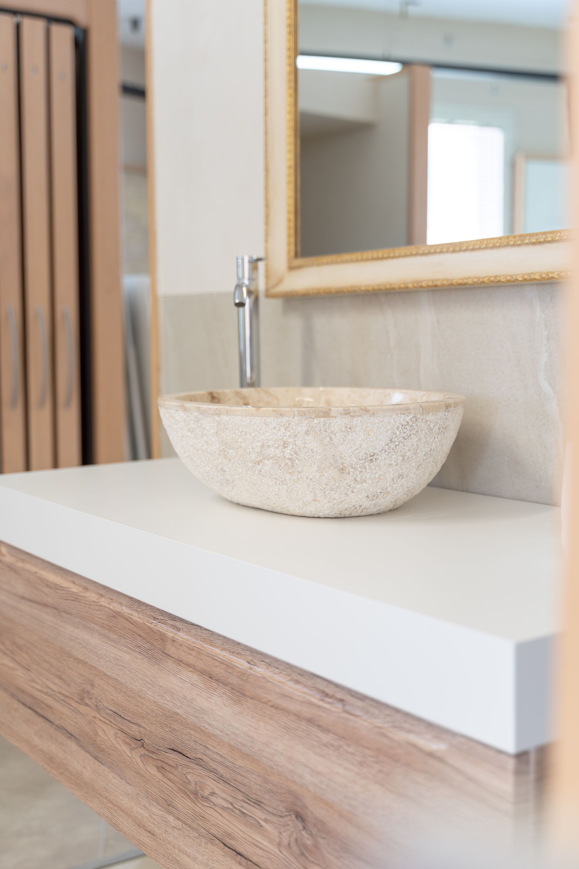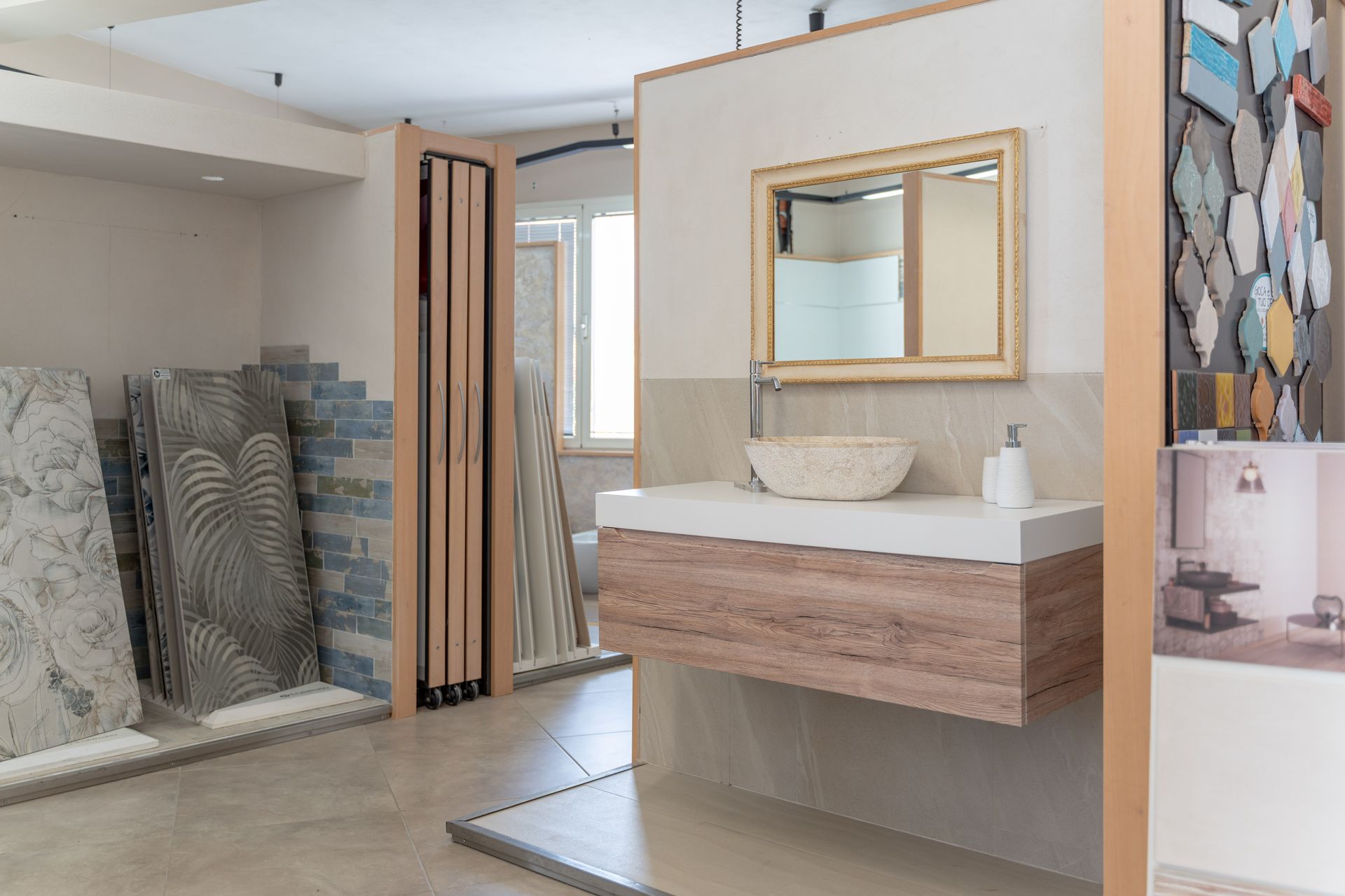 Presso lo showroom aziendale è disponibile tutto il necessario per creare, o ristrutturare, un bagno di design: pavimenti e rivestimenti, box doccia e sanitari, rubinetteria e termoarredi.